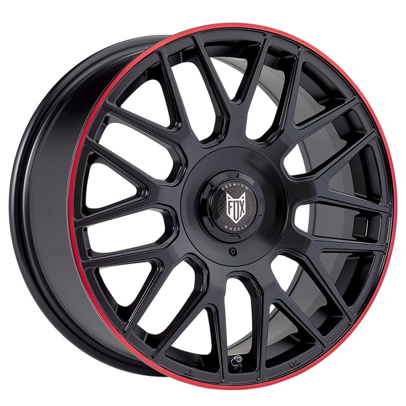 llanta FOX VR3 7.5X17 5X108/112 ET42 73.1 SATIN BLACK RED LIP